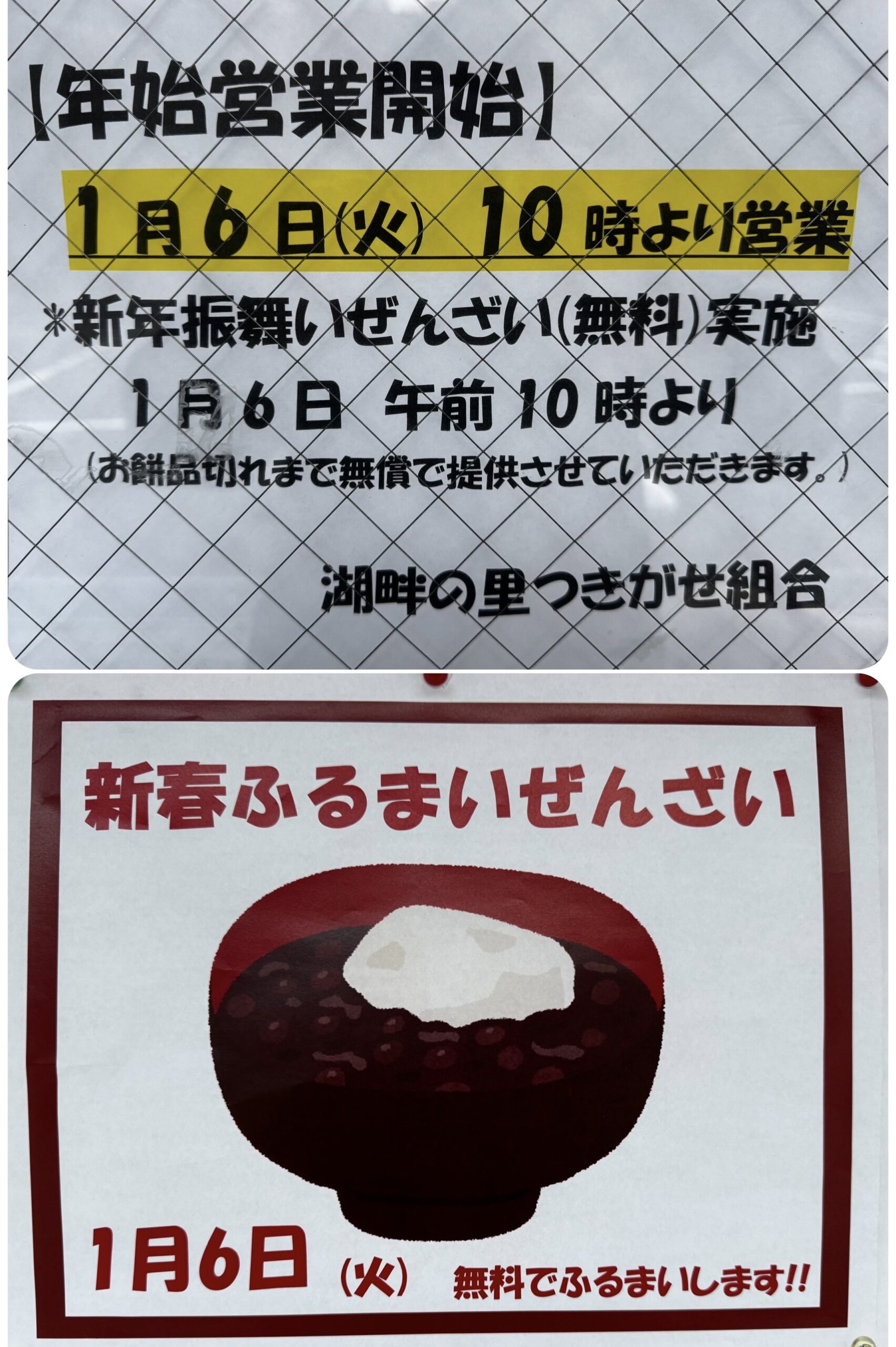 ☆無料☆ 新年振舞いぜんざい(湖畔の里つきがせ)