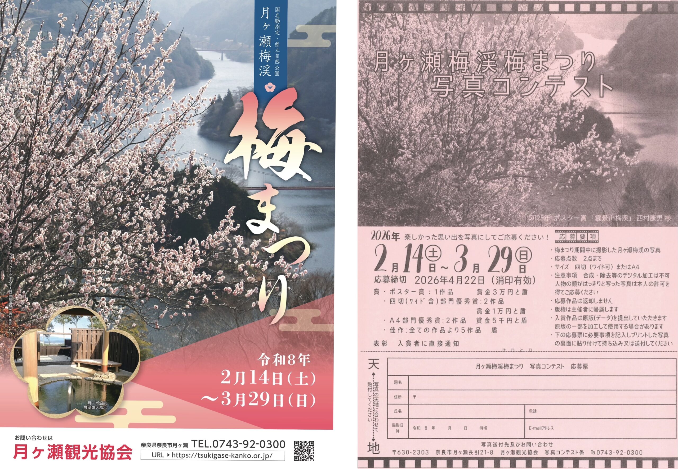 月ヶ瀬梅渓梅まつり 写真コンテスト 2026.03.01 月ヶ瀬梅渓梅まつりを訪れて 楽しかった思い出を写真にしてご応募ください♪ ポスター賞は次年度のポスターデザインとして採用! あなたの写真が月ヶ瀬梅渓梅まつりの”顔”になるかも!? たくさんのご応募をお待ちしております♪ 前の記事へ 記事一覧